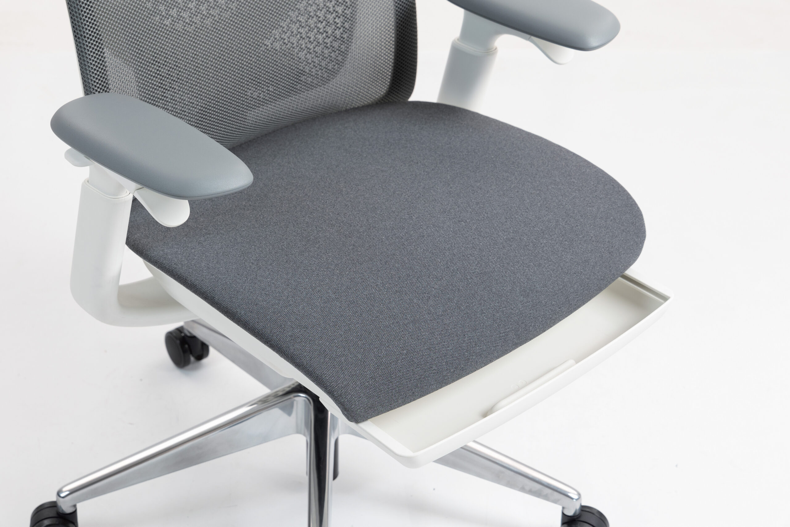 - Podparcie Lędźwi: Regulowane na głębokość wykonane z innowacyjnego perforowanego tworzywa sztucznego, które dopasowuje się do pleców i utrzymuje ich podparcie w pozycji ergonomicznej.