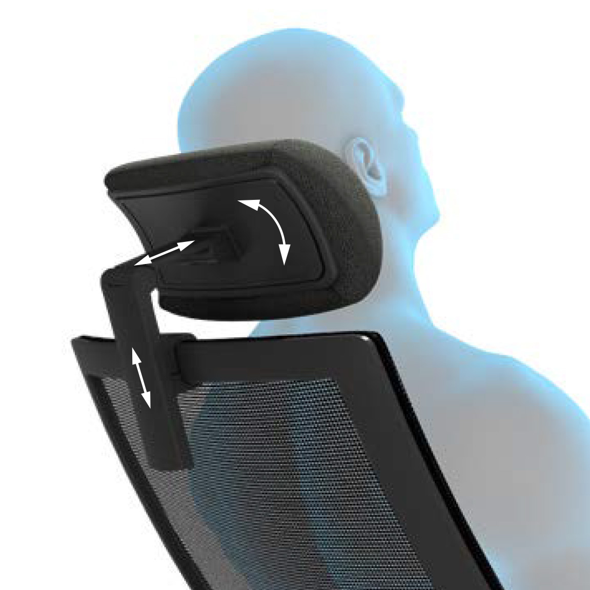Zagłówek 3D – regulowany w trzech kierunkach, zapewnia pełne wsparcie dla karku i głowy.