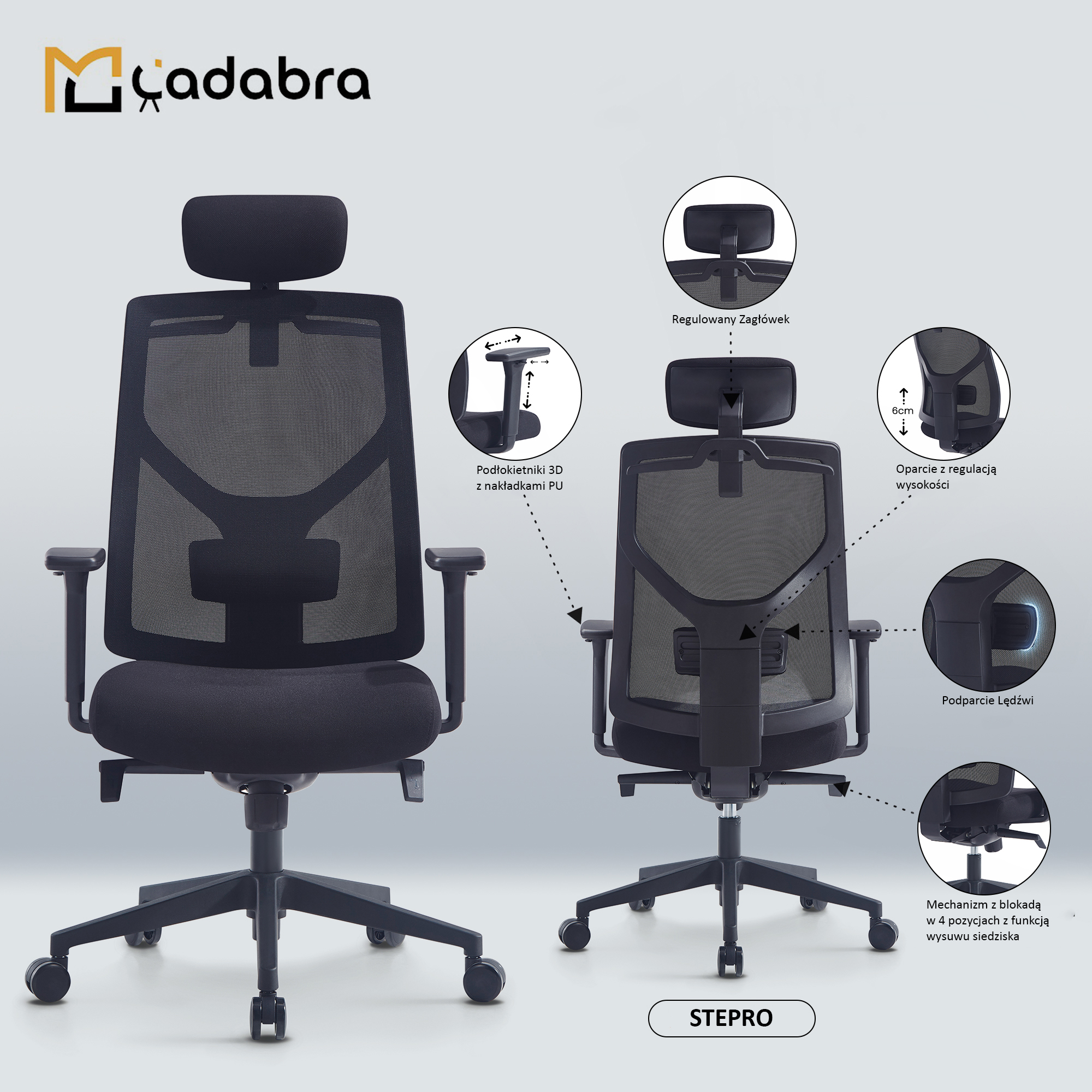 Ergonomiczny fotel obrotowy STEPRO